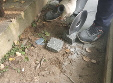 Для начала мы демонтировали уже имеющиеся элементы: снесли бетонный цоколь и изъяли стоящие кресты.