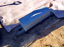 Засыпаем территорию участка пескобетонной смесью и начинаем укладывать брусчатку, одновременно монтируя заранее принесённый памятник.