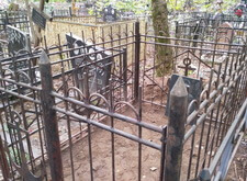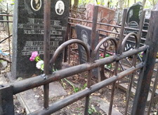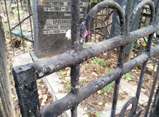 Далее демонтируем все с территории могилы и выпрямляем ограду. Для этого потребовалось полностью откопать две задние ножки, выпрямить ограду и заново залить цементом.