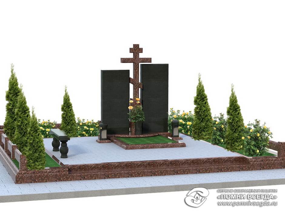 Классический мемориальный комплекс. Здесь нет сложных элементов, нет глубокой концепции. Есть четкие и понятные формы. Яркий религиозный акцент. Благодаря комплексному подходу – могила ухожена, долг перед родителями исполнен.