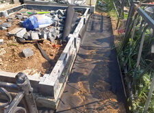 Подготавливаем территорию вокруг места захоронения к покрытию брусчаткой: ввариваем металлическую полосу и укрываем землю геотекстилем.