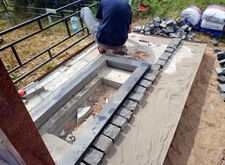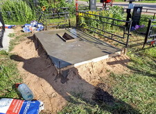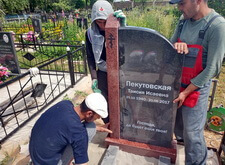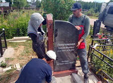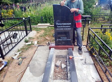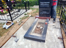 Начинаем собирать гранитное надгробье, предварительно выставив цветник.
