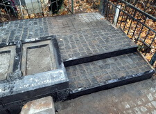 В ходе следующего этапа мы практически завершили работы с наземным покрытием: уложили всю территорию участка гранитной брусчаткой, а перед основаниями для новых памятников соорудили прямоугольные цветники, борта которых были выполнены из чёрного гранита.