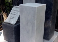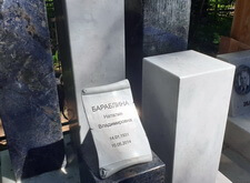 Так выглядело место захоронения на момент окончания работы: деревянный крест покрыт защитным раствором; мраморные изделия отшлифованы и покрыты гидрофобной субстанцией, стыки элементов промазаны белым герметиком; полые столбики, восстановлены; в цветнике заменена земля и посажен газон.