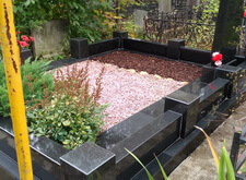 Гранит помыли, цветы в цветнике убрали, закрыли землю корой, могилу почистили от опавшей листвы. Могила снова в полном порядке.