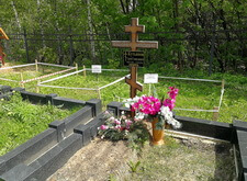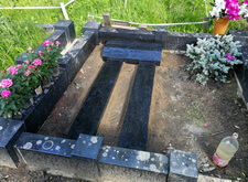 Затем приносим надгробье, предварительно укрепив на нём фотокерамику с изображением усопшего, устанавливаем его. Территорию участка засыпаем каменной крошкой, в цветник сажаем растения, в одном из углов места захоронения организовываем клумбу.